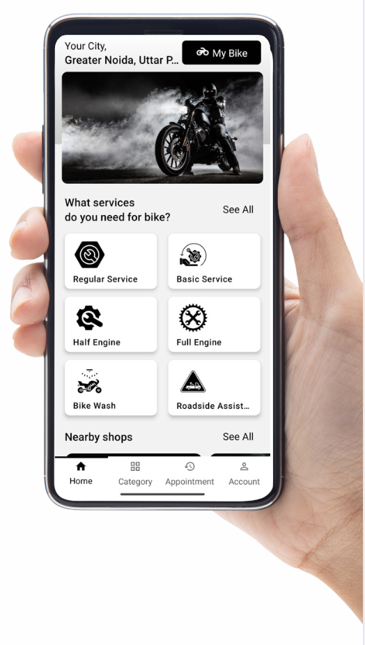 Enjoy hassle-free online booking and real-time updates for your motorbike servicing needs.